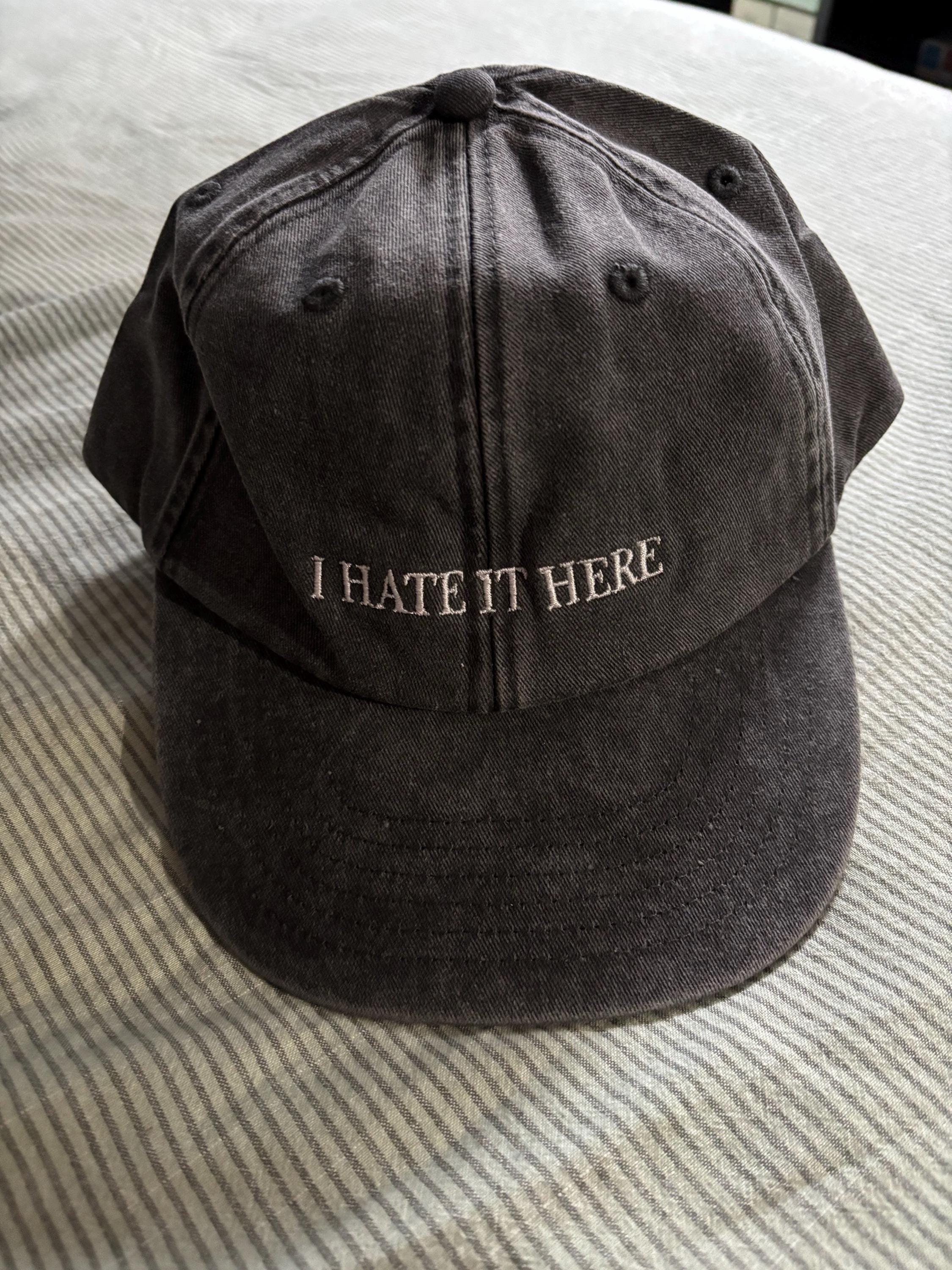 Embroidered on a low profile dad cap giving a vintage lived-in feel.